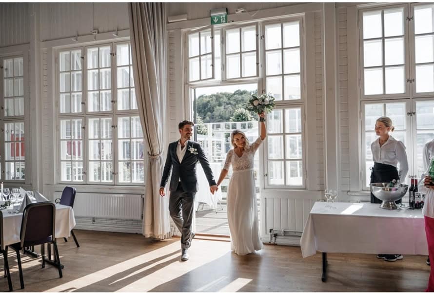 Vattnet, solnedgången, närheten till staden och en fantastisk middag – Reveljen är som gjort för ett lyckat bröllop.