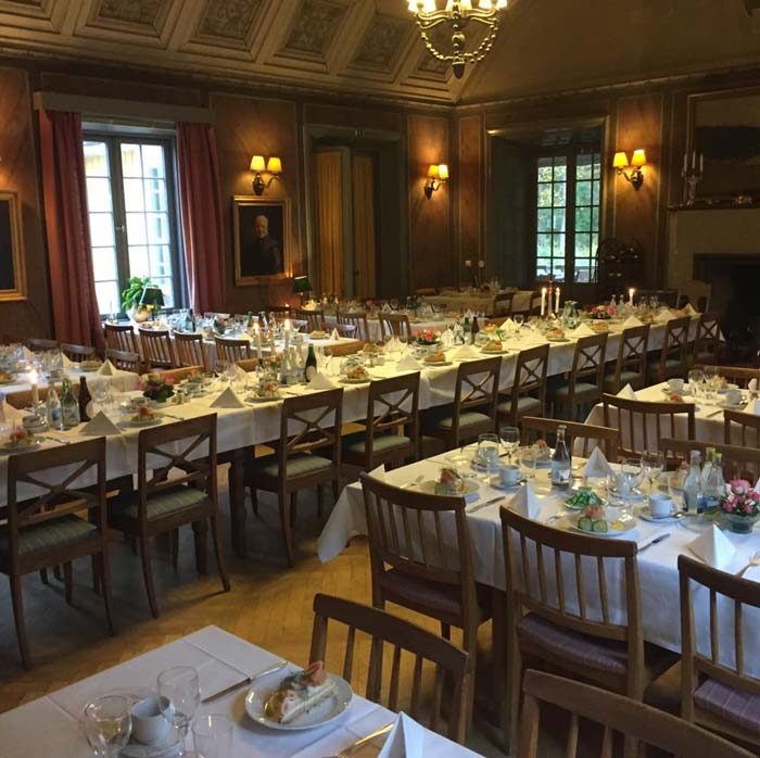 Efter att ha avnjutit fest och mat flyttar ni till vårt kaffe rum, samtidigt som vi dukar om till dans i den ståtliga matsalen om ni så vill.